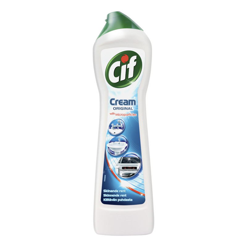 Эффективности чистящих средств Cif доверяют более чем в 50 странах. Cif Cream Original эффективно удаляет жир и грязь. Усовершенствованная композиция, содержащая микрочастицы, удаляет даже самые стойкие загрязнения, такие как сгоревшая пища и остатки известкового налета, на 100%. Благодаря новой композиции на очищаемой поверхности теперь достаточно меньше полосканий, что экономит воду и позволяет быстрее наслаждаться чистым домом.